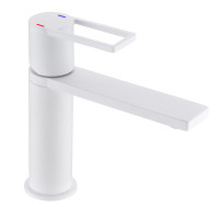 Mecanismo: cartucho cerámico Ø 26 mm Aireador invisible, fácil de quitar con una llave (suministrada). Asa: metal perforado Cuerpo: latón Revestimiento: blanco Caño: fijo Base: Ø 51,6 mm Desagüe: click-clac ABS NF (a juego con el color del grifo) Conexión flexible: acero inoxidable F3/8